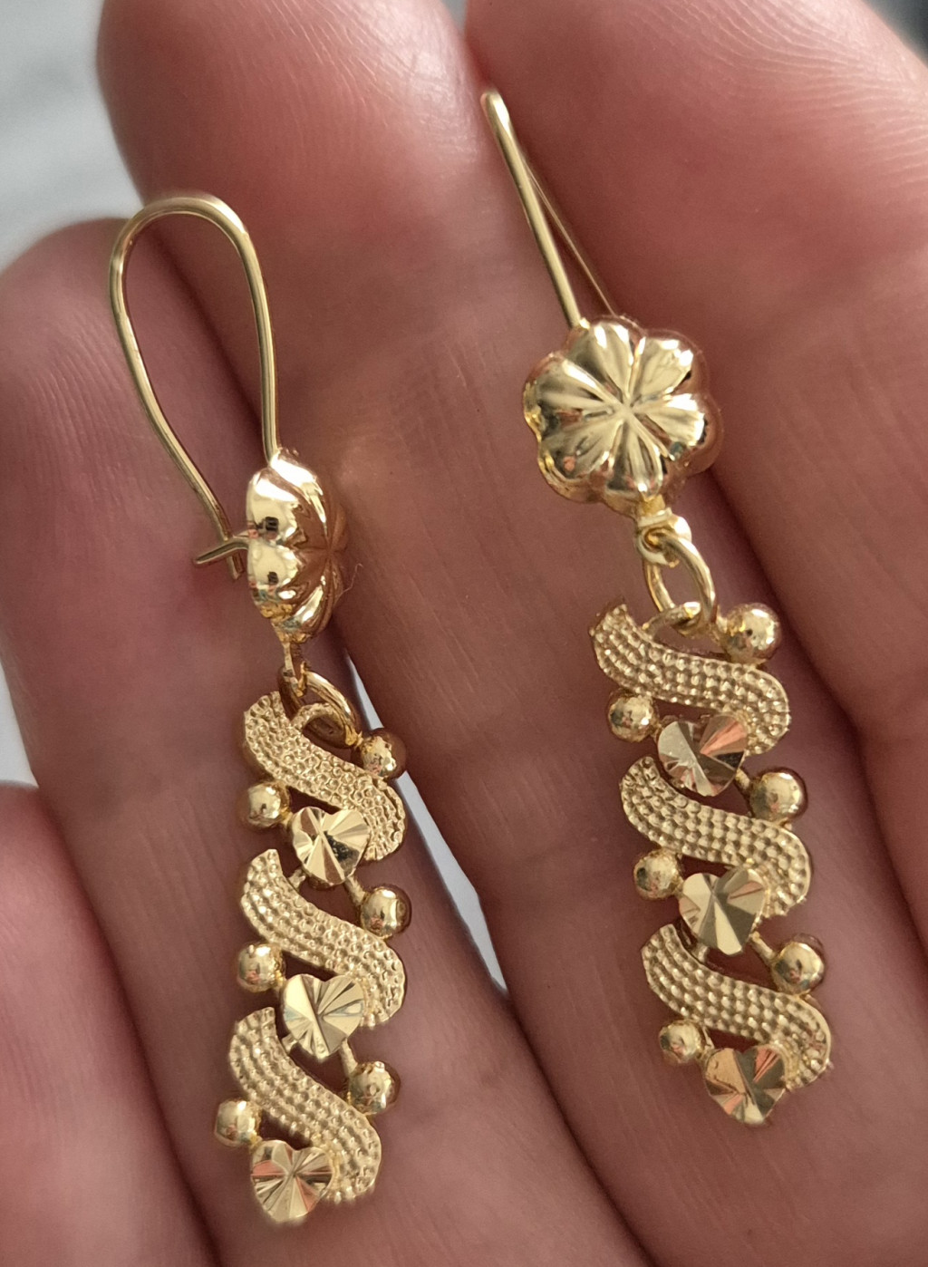 Antiallergén nemesacél arany színű csüngős fülbevaló. 5 cm hosszú.