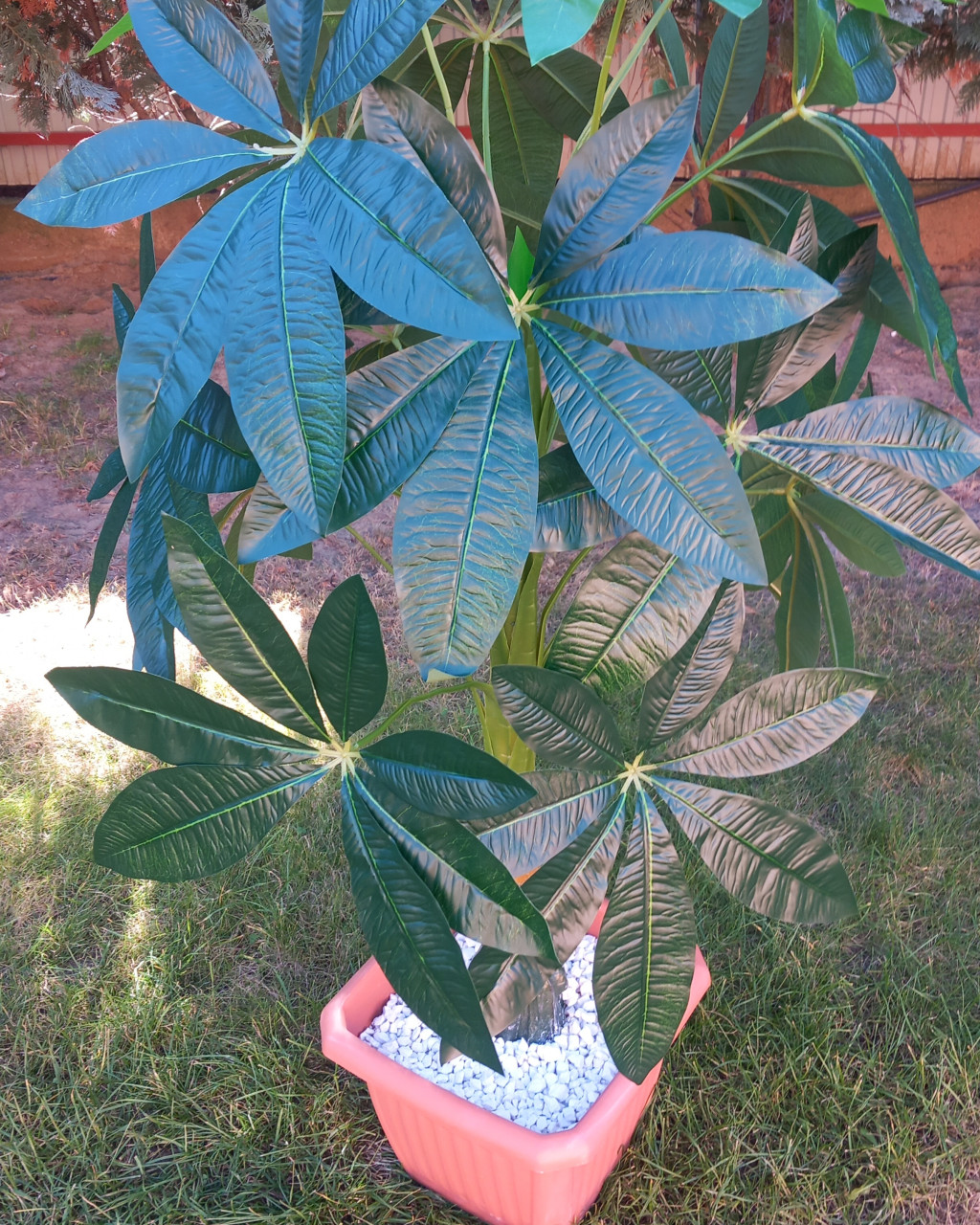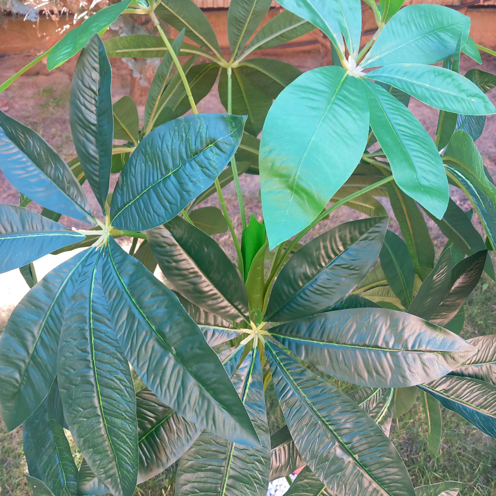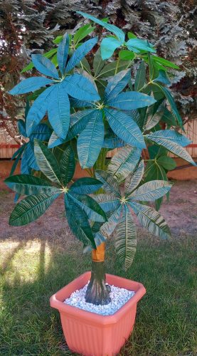 Élethű szerencsefa 125 cm magas, barna múanyag kocka kaspóban.