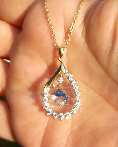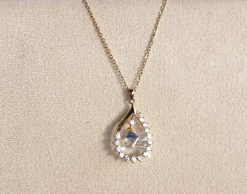 Antiallergén nemesacél arany színű nyaklánc, különleges kővel dísztett medállal. A lánc hossza 45 cm.